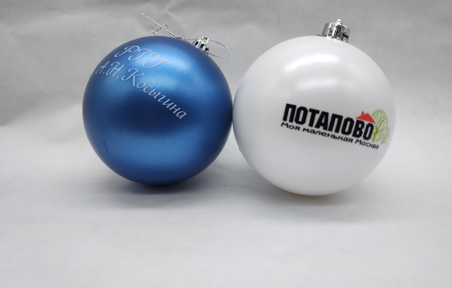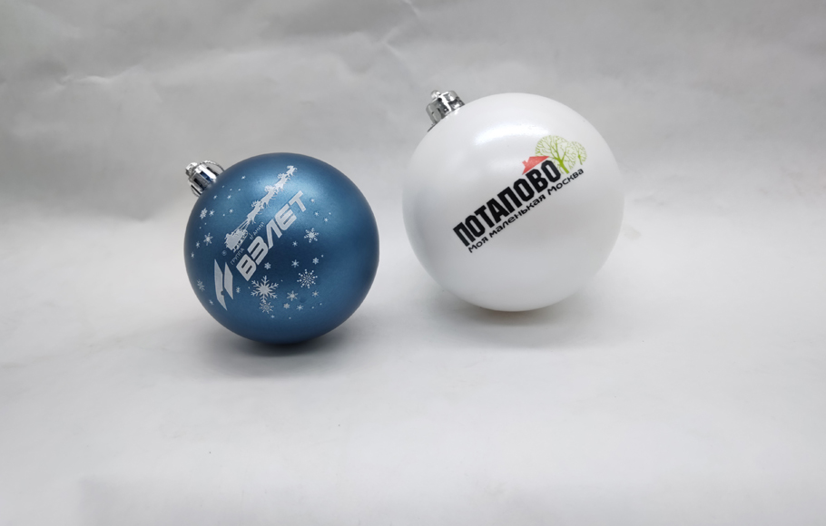 классический стеклянный елочный шар и на пластиковый. На шар, например, может быть нанесен