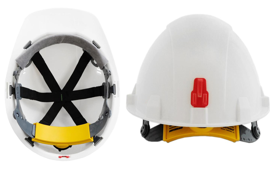 Каска белая состоит из ударопрочного корпуса, выполненного из полипропилена, внутренней оснастки