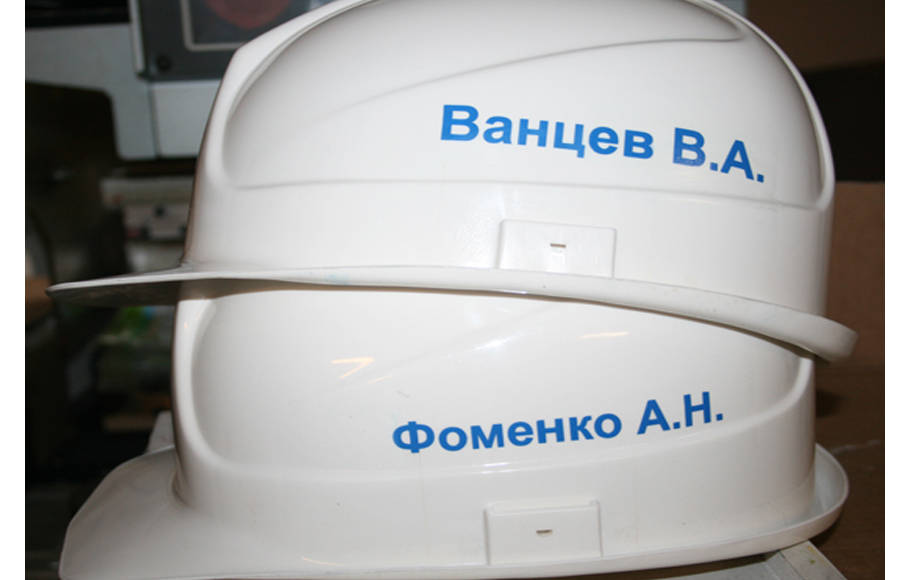 стиль компании. Помимо логотипа, на строительные каски наносят название компании, а также