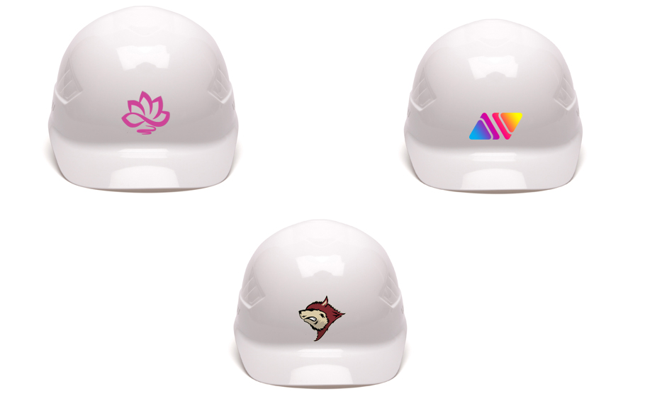 Каска с логотипом вашей компании остается неизменно яркой и красочной, несмотря на многократное